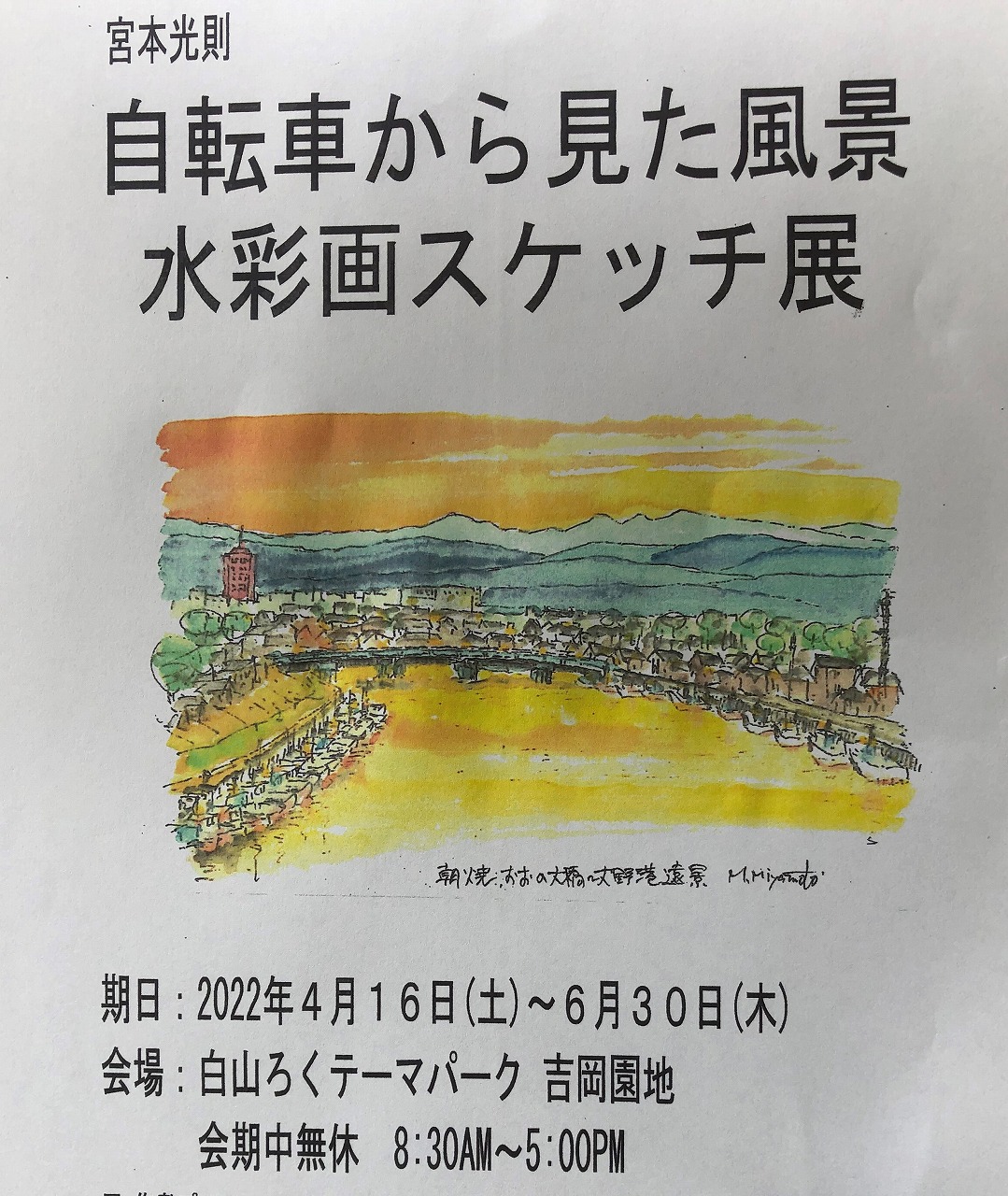石川県サイクリング協会会員の宮本光則氏による水彩スケッチ展のお知らせです。