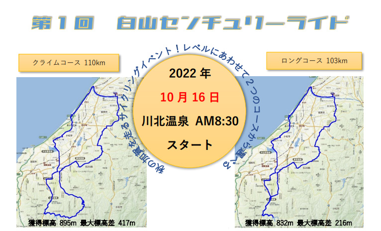 ●当日のコース変更は対応できません。前日までに主催または石川県サイクリング協会加盟店にご連絡ください。