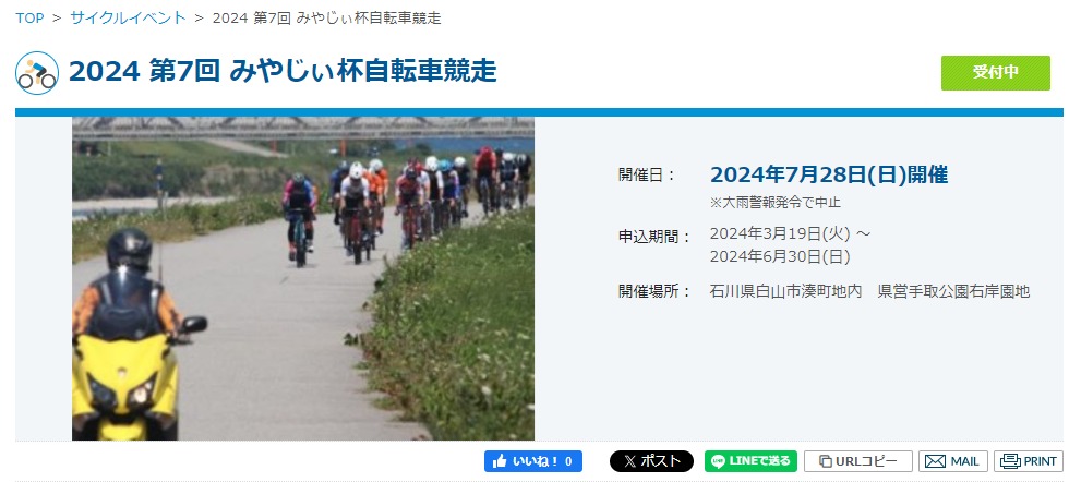 ※大雨警報発令で中止申込期間:2024年3月19日(火) ~2024年6月30日(日)開催場所:石川県白山市湊町地内 県営手取公園右岸園地