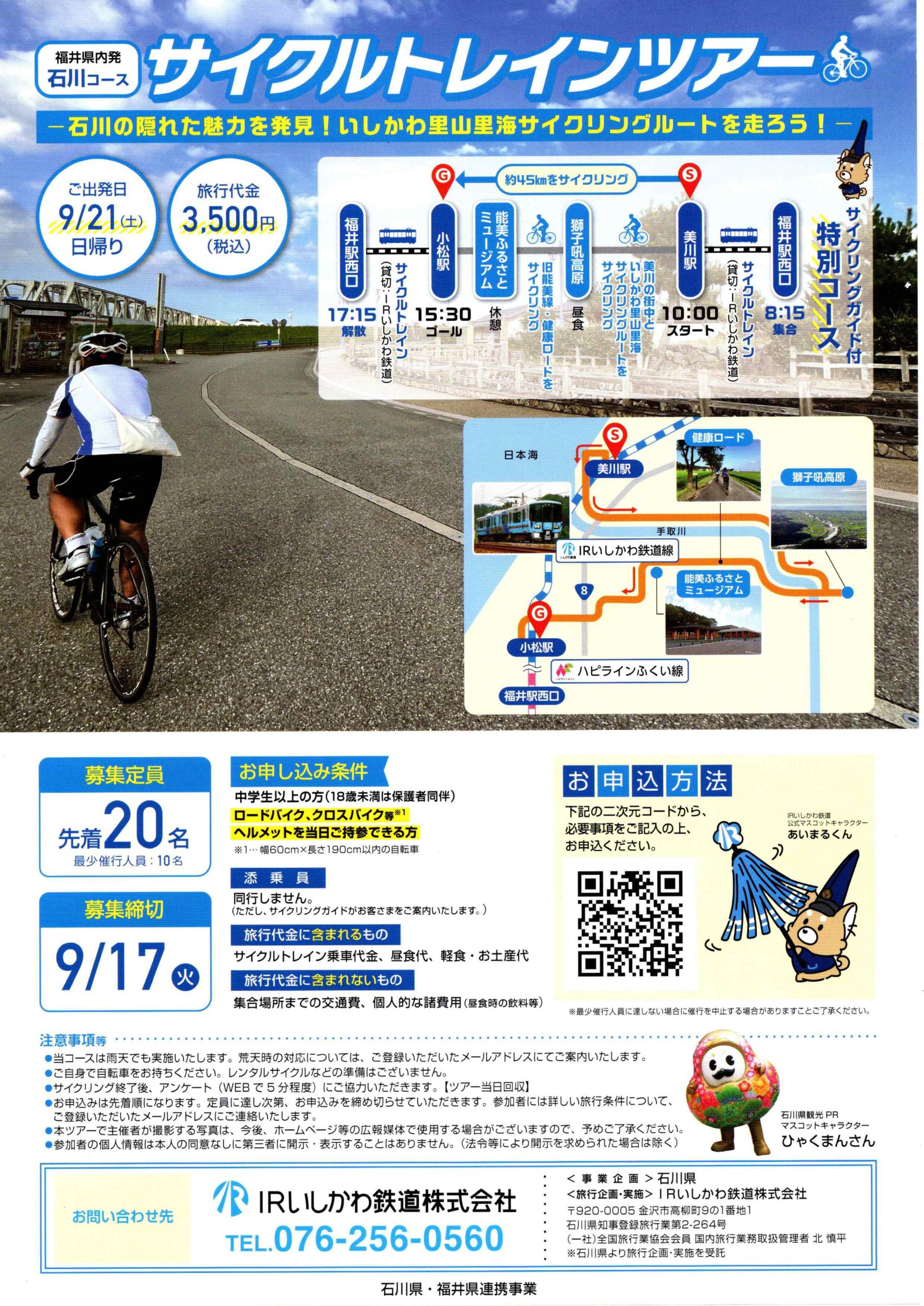 ※9月28日石川県発着の(福井コース)サイクルトレインツアーの詳細がわかり次第UPします。(石川県民向け)